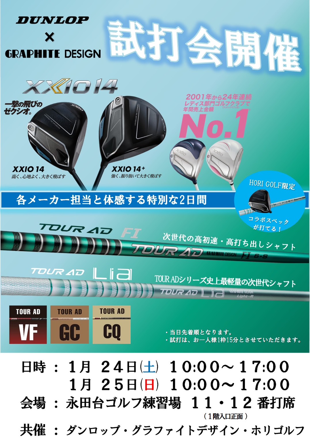 ダンロップ「XXIO14」×グラファイトデザイン「TOUR AD」のコラボ試打会を開催いたします!!