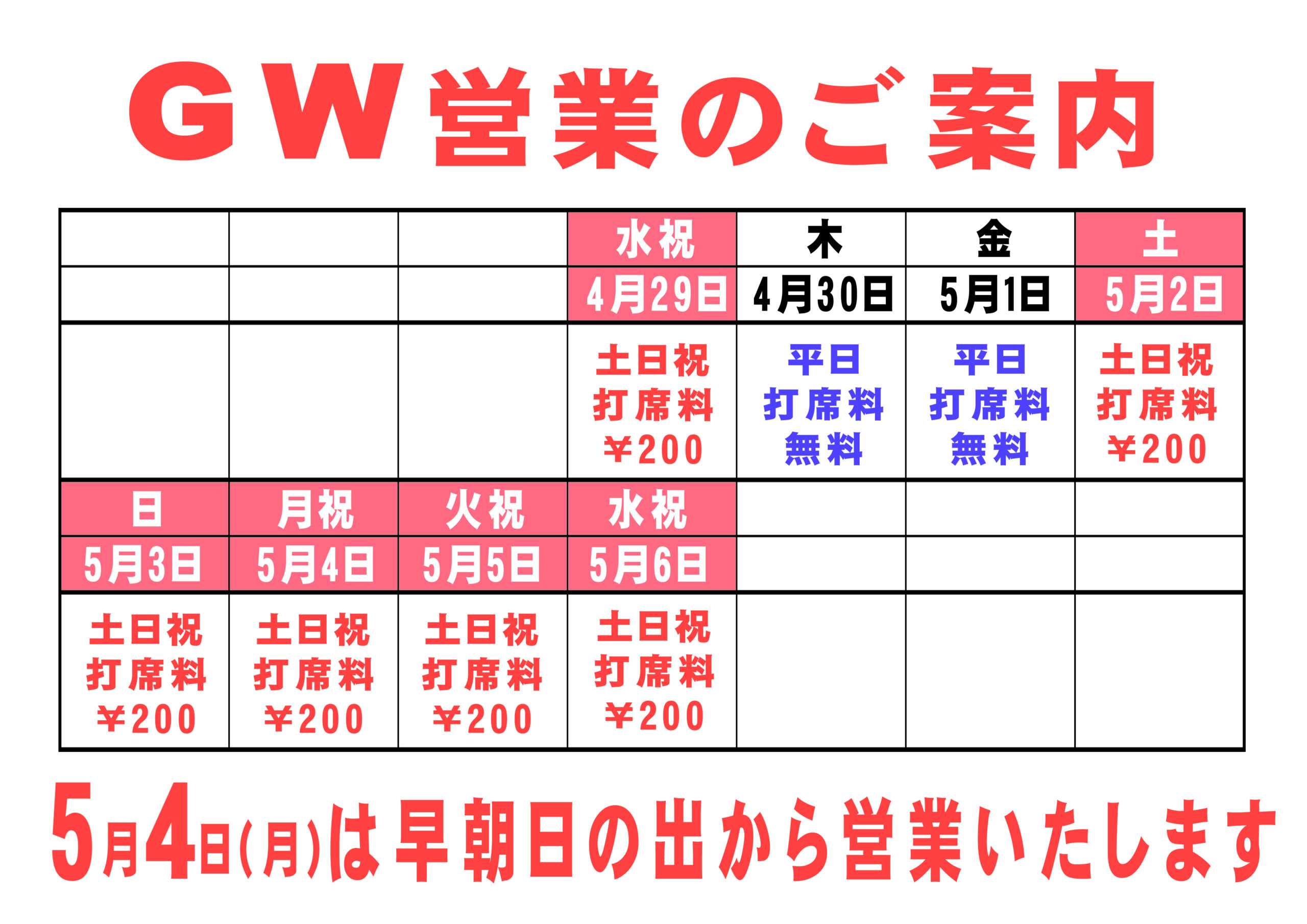 2026年4月28日 GWの営業に関しまして 2026年4月14日 【重要】レッスン予約状況が表示されない不具合が復旧いたしました。 2026年2月20日 2月21日~リニューアルオープンいたしました! 2025年12月14日 レンジボール総入れ替えのお知らせ 2024年10月28日 【重要】レッスン予約状況欄のリニューアルについて 2024年9月8日 新紙幣ご利用可能です。 2023年10月12日 永田台スマゴル開催中 GWの営業に関しまして 2026年4月28日 平素より当練習場をご愛顧下さいまして誠にありがとうございます。 本年のGWの営業は以下の通りとなります。 営業時間、料金に関してはカレンダー通り。 5月4日の月曜日は早朝日の出より営業させて頂きます。 GWの営業に関しまして 2026年4月28日 平素より当練習場をご愛顧下さいまして誠にありがとうございます。 本年のGWの営業は以下の通りとなります。 営業時間、料金に関してはカレンダー通り。 5月4日の月曜日は早朝日の出より営業させて頂きます。 過去の記事